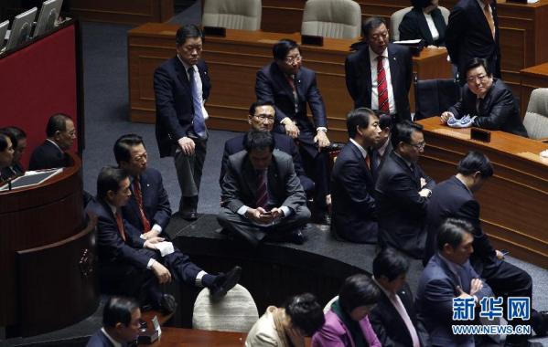 韩国民主议员向主席台扔催泪弹(图)(11)